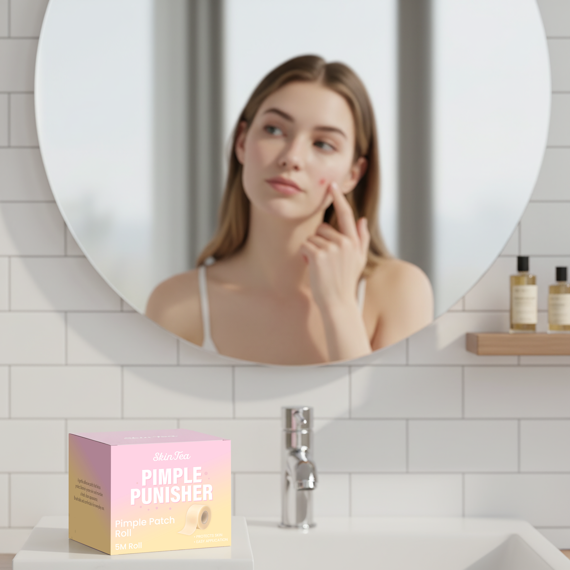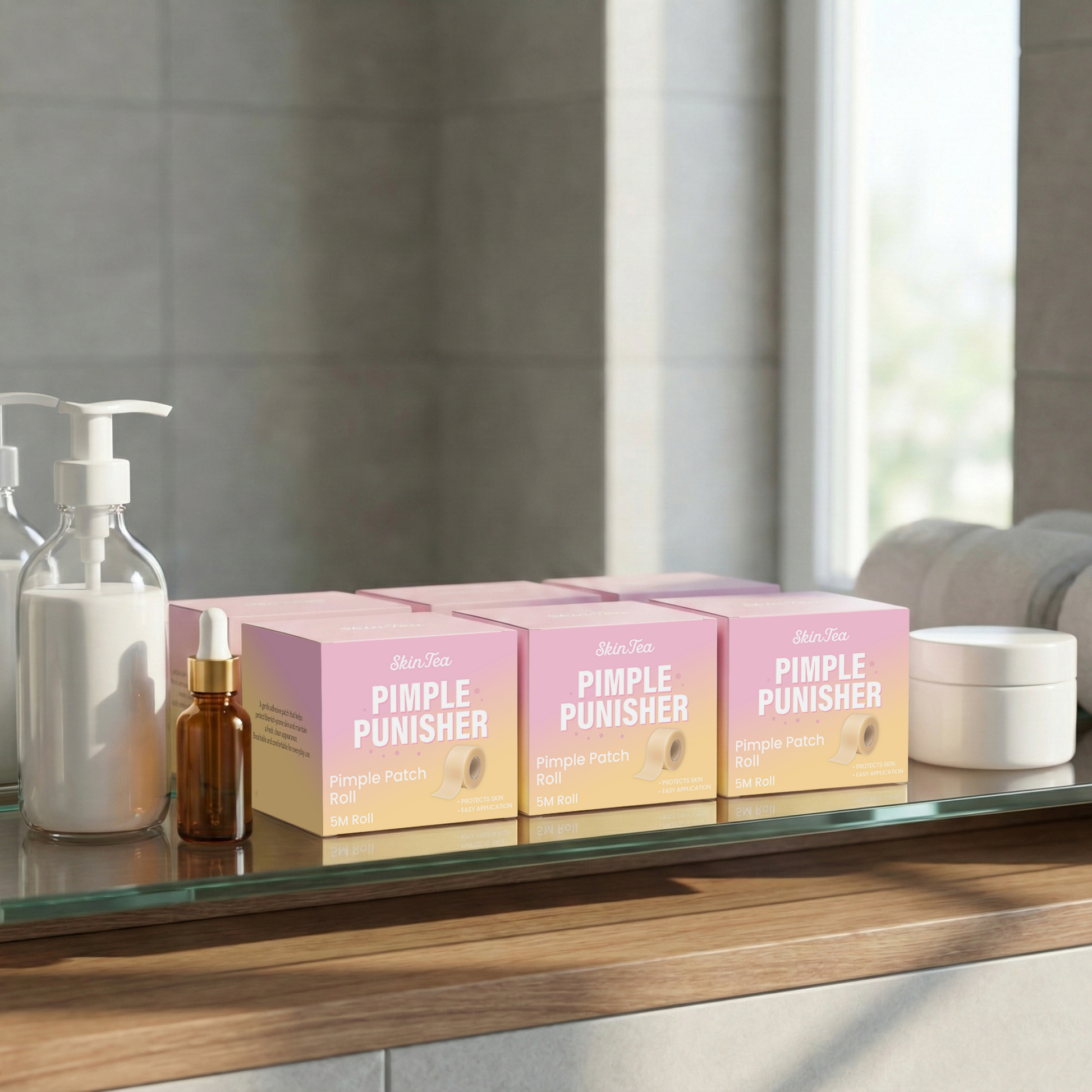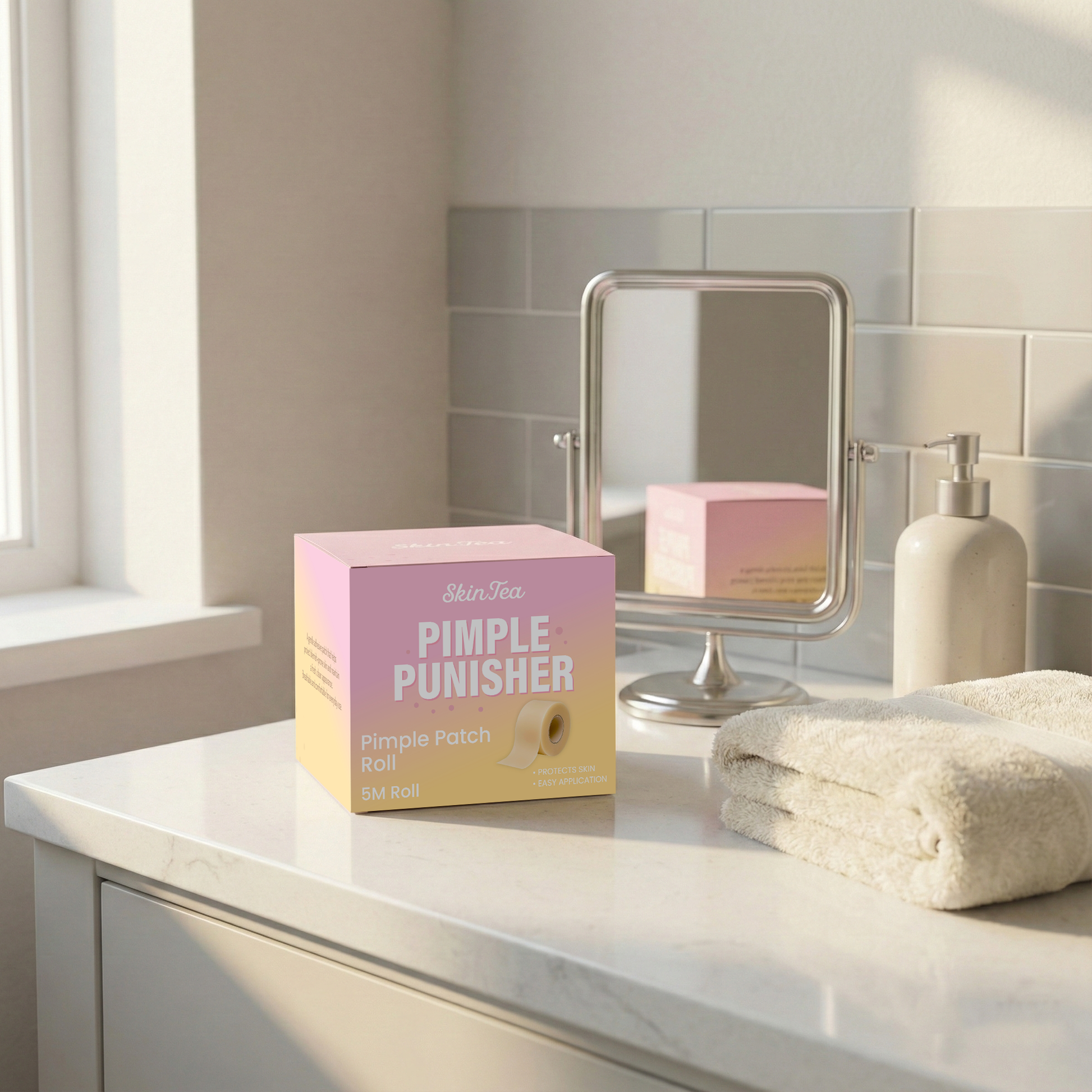 A 5-metre roll of protective skin tape — the equivalent of over 2,500 individual pimple patches. Cut it to any size you need for any breakout, big or small.